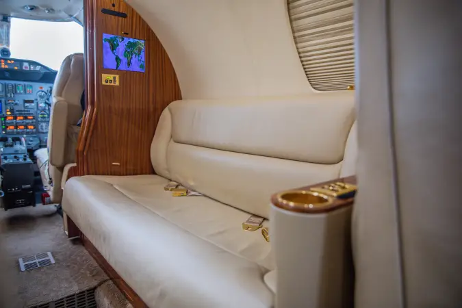 A cabin temp indicator and freon air conditioning modification ensure passenger comfort throughout flight, while an LED cabin lighting upgrade with EMTEQ downwash and interior lighting, and AVTEC LED passenger reading lights provide ideal conditions for work or entertainment.