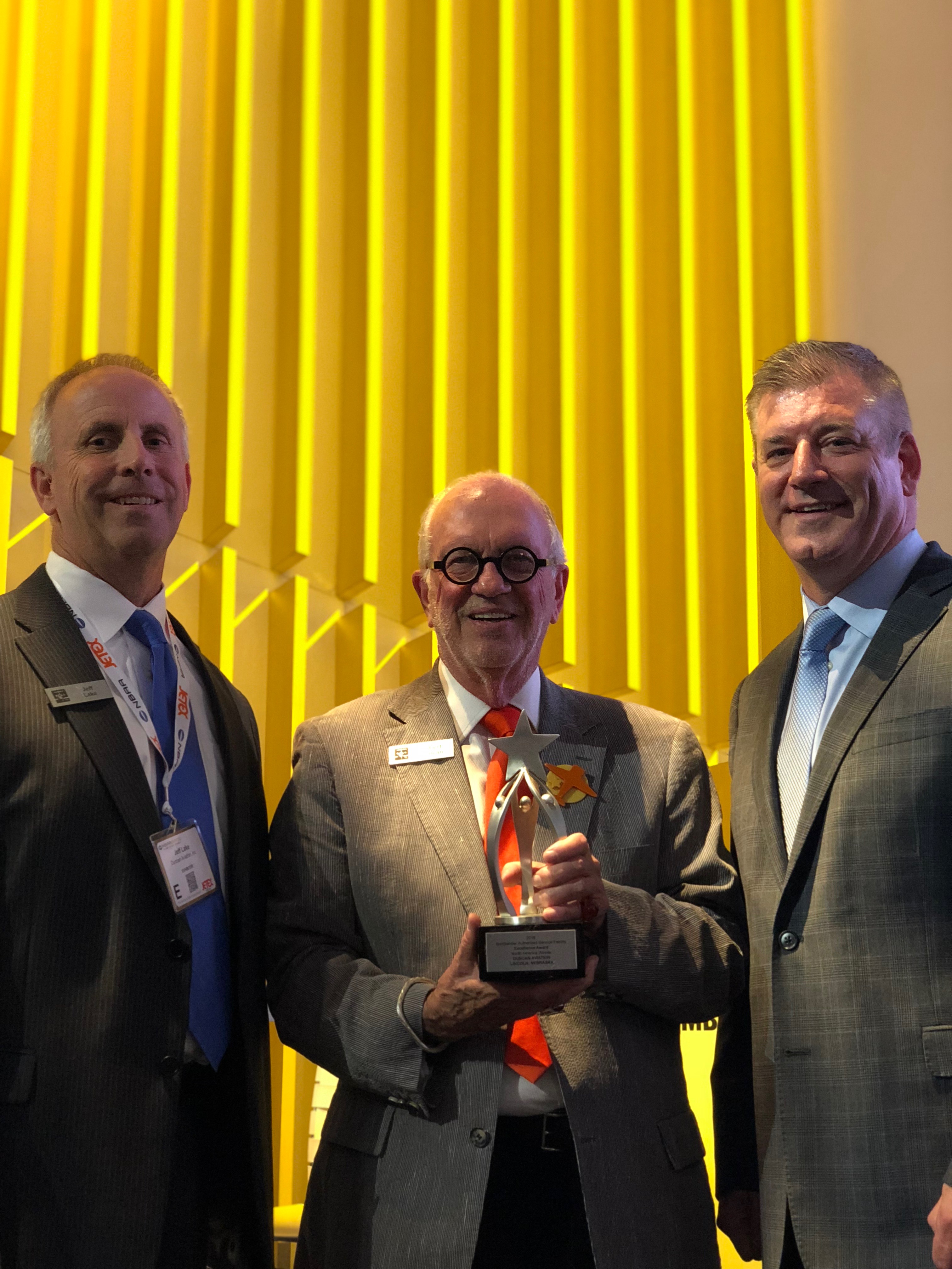 Duncan Aviation Chairman Emeritus J. Robert Duncan and Vice President and Chief Operating Officer Jeff Lake accepted the award from Molloy.