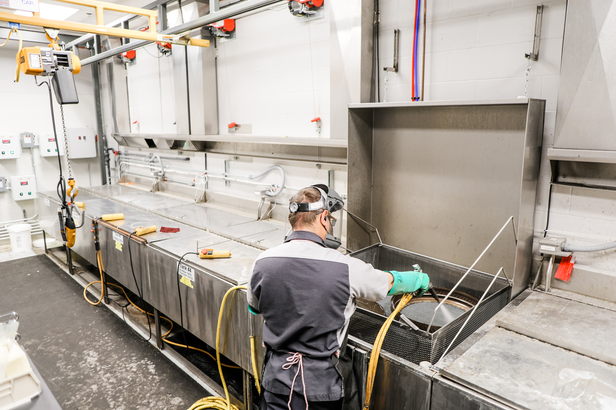 Larger wash sinks allow for more parts to be cleaned at once. Where before the parts were washed by hand with a solvent and a brush, they now soak in the large sinks to allow the solvent the opportunity to penetrate all crevices, resulting in cleaner parts and a more thorough inspection.
