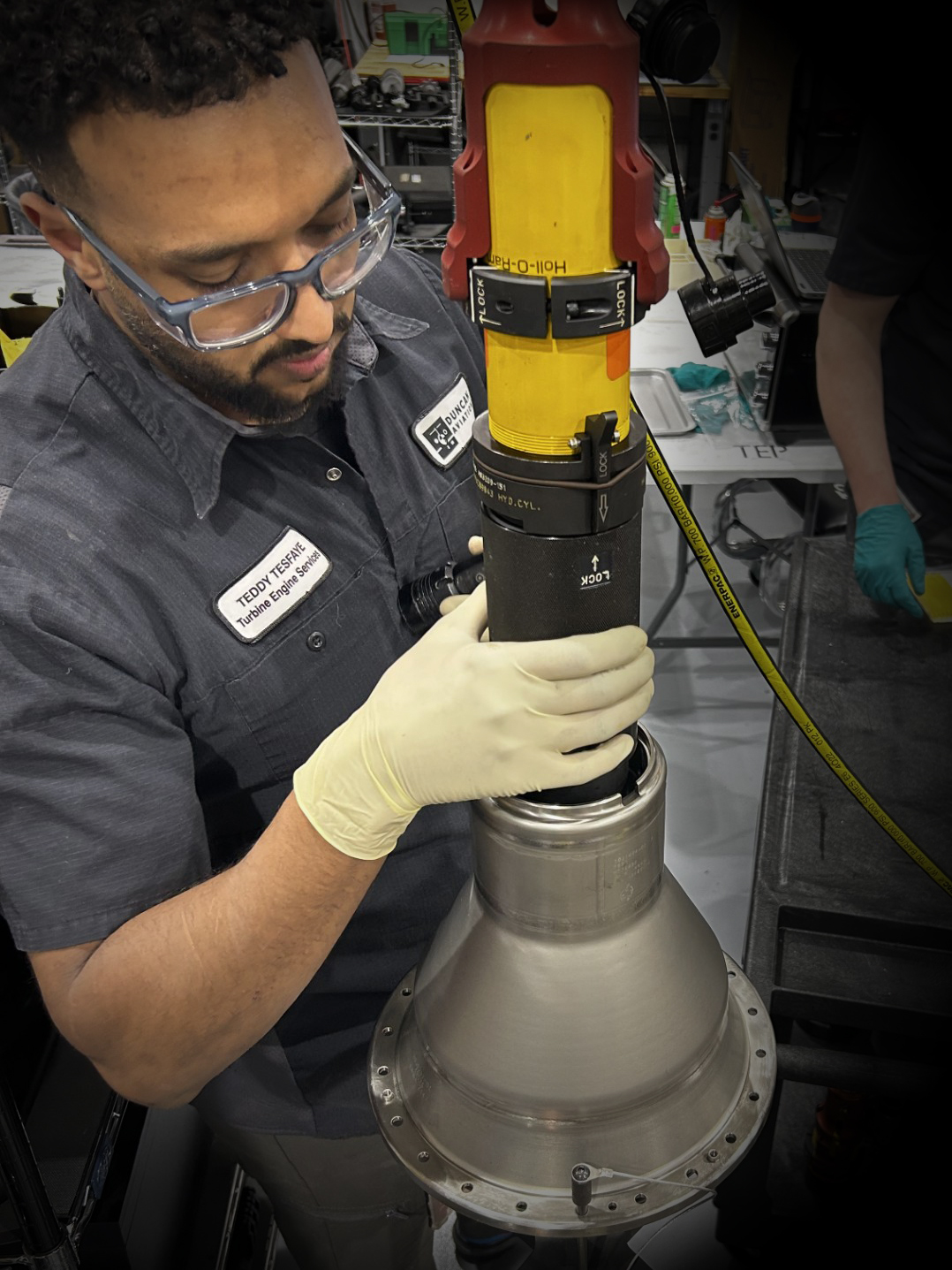 Alec Pusateri, Duncan Aviation’s Pratt & Whitney Engineer, participated alongside the technicians, playing a crucial role in translating complex manual information and data into practical applications. Harms appreciates Pusateri’s ability to “consume massive amounts of detailed information and present it in a way that is easier to understand and more useful.”