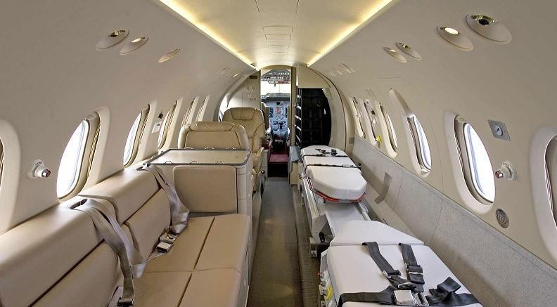 The Hawker is able to carry two critical-care stretcher patients and two medical teams at one time, or three stretcher patients and up to three clinical staff. It is configured with dual Lifeport PLUS aeromedical modules in tandem configuration. In addition, it can carry medical oxygen, allows for medical suction, and is equipped with hands-free satellite phone communications.